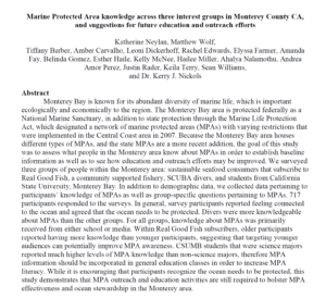 The collaborative worked with CSU Monterey Bay students to engage and educate local dive shops on MPAs, surveying them on best approaches for education and establishing a baseline of knowledge regarding MPAs.