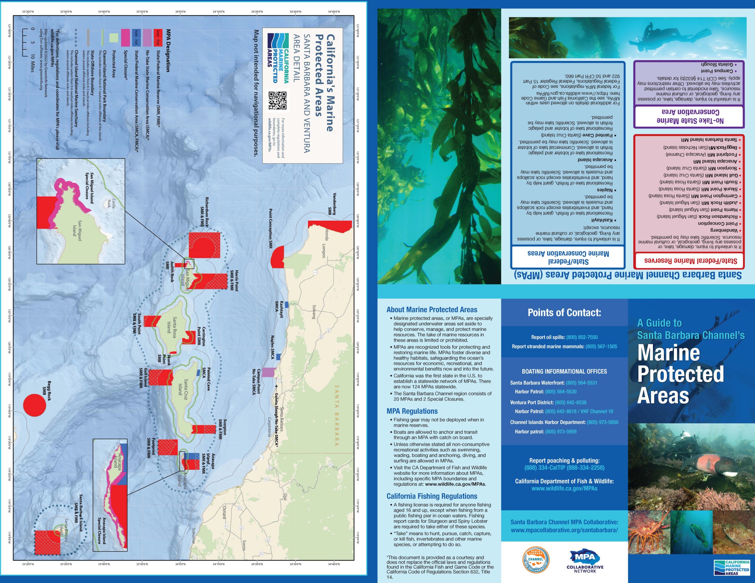 An MPA Compliance Small Grant project of the Santa Barbara Channel MPA Collaborative resulted in a revised Santa Barbara Channel MPA brochure with images of the MPA boundaries surveyed by a licensed land surveyor. This project is part of the MPA Collaborative Networks’ multi-year MPA Compliance Initiative and was entirely driven by local input through the Community Compliance Forums held in 2020 and subsequent collaborative meetings. It was made possible by a grant made through the Once-Through Cooling program of Resources Legacy Fund, on behalf of the Once-Through Cooling Interim Mitigation Program of the Ocean Protection Council.